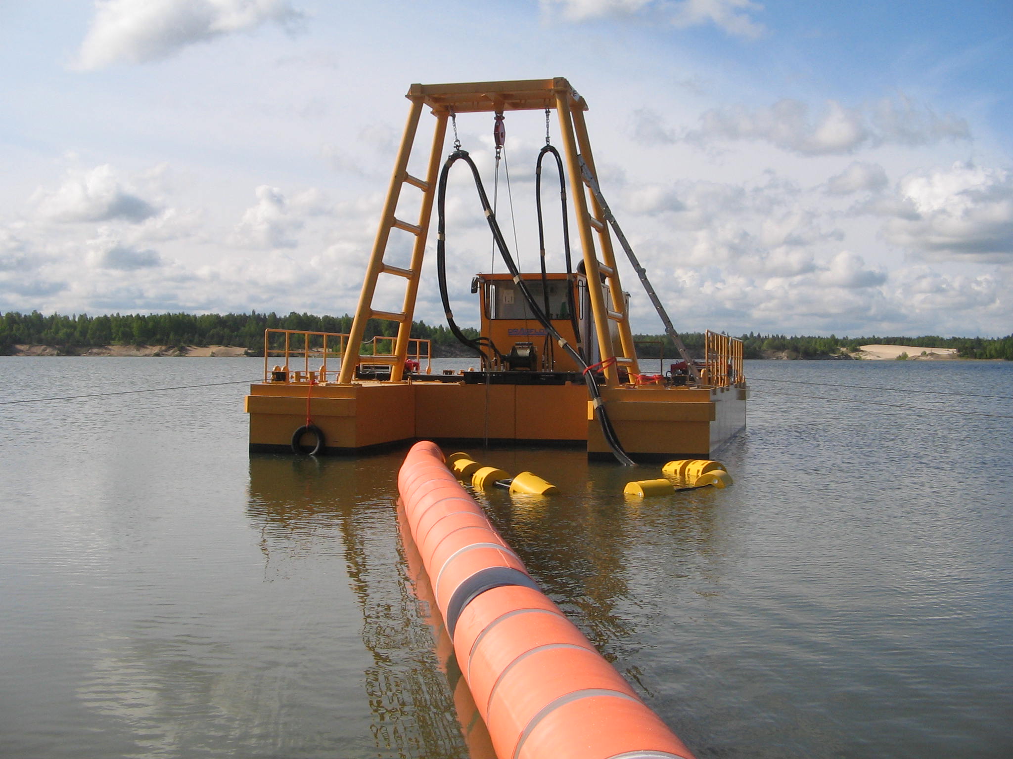 -Перекачивать оседающие шламы благодаря гидроразмыву или рыхлительным экскаваторам с содержанием твердых частиц до 50% по объему и 70% по весу;