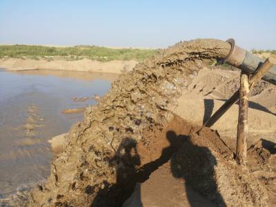 Часто, добыча песка со дна рек сопровождает дноуглубительные работы. В таких случаях, песок подается на прибрежную территорию, либо на специальные грунтоотвозные суда – баржи.